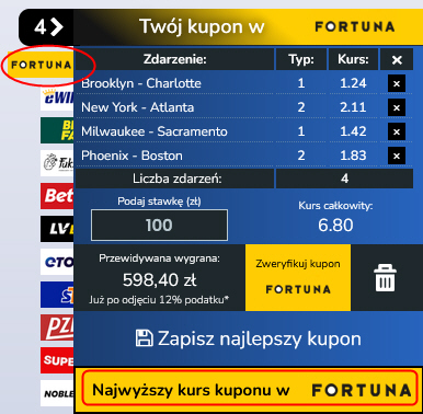 5) W porównywarce kursów możesz nie tylko sprawdzić który bukmacher oferuje najwyższe kursy na mecz, ale także możesz tworzyć kupony składające się z wielu różnych zdarzeń (AKO), a następnie porównywarka wskaże u którego bukmachera możliwe będzie uzyskanie najwyższej wygranej z takiego wielozdarzeniowego kuponu!
